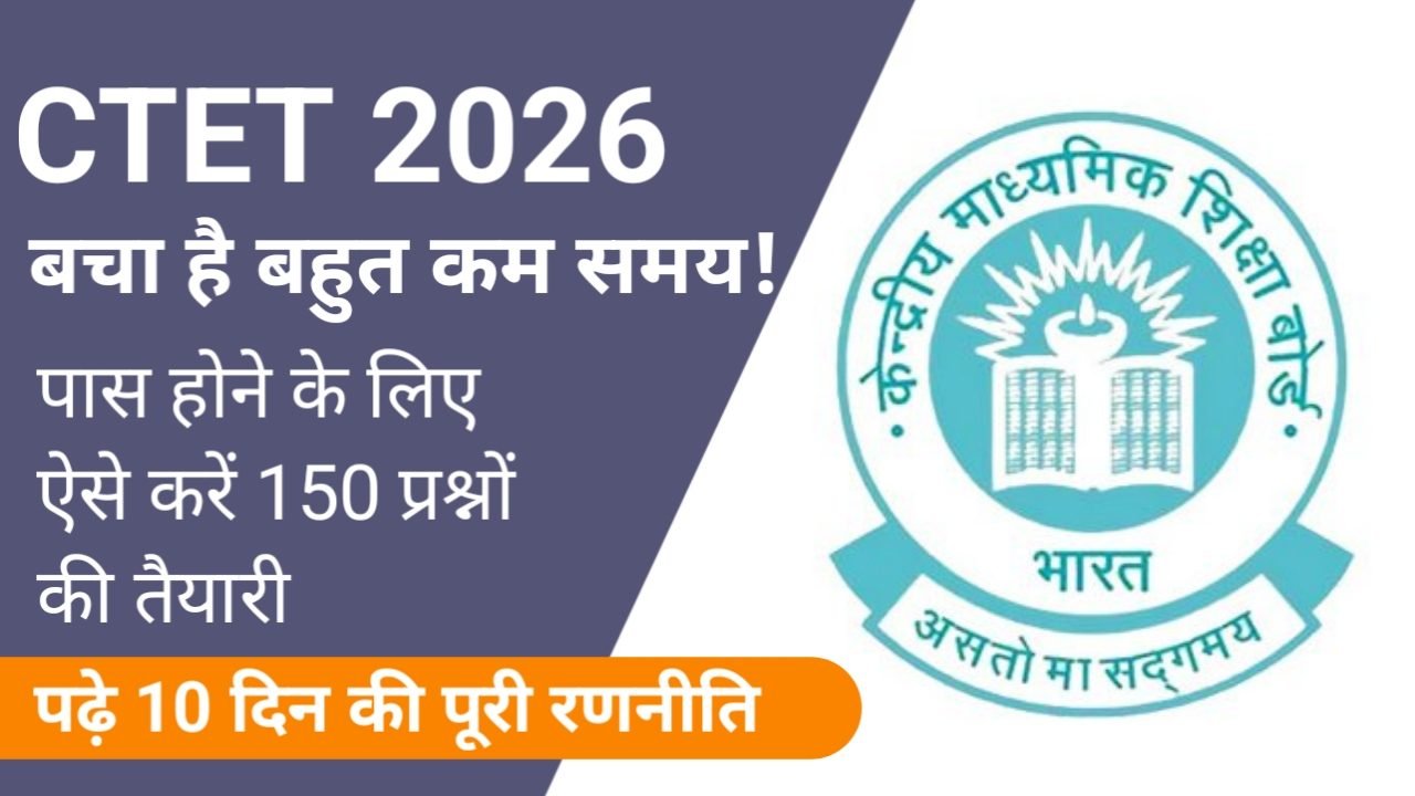 CTET Exam 2026 Strategy (Central Teacher Eligibility Test): टीचर बनने की दिशा में एक अहम क्वालिफाइंग परीक्षा है , परीक्षा में सफल होने के लिए जनरल कैटेगरी को 60% (90 अंक) और SC/ST/OBC वर्ग को 55% (82 अंक) लाने होते हैं। अच्छी बात यह है कि CTET में Negative Marking नहीं होती, इसलिए सही रणनीति के साथ 8 से 9 दिन में भी मजबूत तैयारी की जा सकती है।